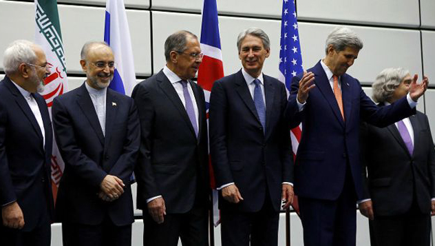 ![]() Los cancilleres de Irán y Rusia y el secretario de Estado de Estados Unidos, entre otros, posan para la foto, después de lograr el acuerdo (Fuente: Reuters)