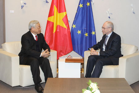 Se puede decir que este recorrido marcó un importante hito, generó un potente ímpetu y echó cimientos para el impulso de relaciones integrales entre Vietnam e importantes contrapartes europeas. Respecto a Italia, Vietnam elevó el marco de cooperación al nivel de socios estratégicos. Para el Reino Unido, Vietnam entrañó la materialización de contenidos en sus vínculos estratégicos bilaterales. En cuanto al Reino de Bélgica, amplió los nexos multifacéticos entre los dos Estados. Con la UE se discutieron medidas destinadas a profundizar más sus relaciones con el país indochino. El líder partidista vietnamita se entrevistó con el papa Benedicto XVI, con dirigentes de la UE y países visitados a fin de incrementar nexos políticos y en otras esferas. En cuanto a la cooperación económica, comercial e inversionista, el secretario general del PCV y jefes de Estado de países visitados discutieron potencialidades de colaboración y proyectaron medidas positivas encaminadas a fortalecer los vínculos En el terreno propiamente de la Unión Europea, durante los contactos sostenidos ambas partes saludaron la firma del Acuerdo de socios de cooperación integral Vietnam-UE (PCA) y se comprometieron a dinamizar el proceso de negociación para un Acuerdo de Libre Comercio (FTA) en fecha próxima. Además consideraron necesario ampliar y elevar la eficiencia de la colaboración entre Vietnam y países europeos en defensa, seguridad y otros dominios. Nguyen Phú Trong y dirigentes de la UE coincidieron en continuar manteniendo la cooperación y coordinación en foros multilaterales y dedicar más tiempo a emprender acciones enfiladas a impulsar los nexos entre ASEAN y UE, en especial subrayando el papel de Vietnam como coordinador entre ambos bloques. Asimismo abordaron problemas vinculados con el mantenimiento de la paz y el desarrollo en el Sudeste Asiático, y el Asia-Pacífico.
