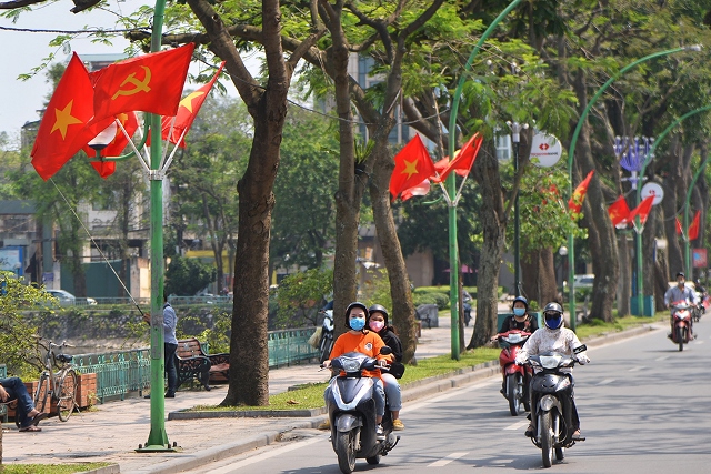 Una calle de Vietnam engalanada por banderas en conmemoración del 47 aniversario de la liberación del sur y la reunificación nacional. (Foto: nhandan.vn) |