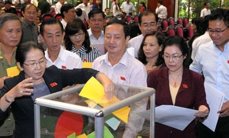 ![]() La votación de confianza para cargos de elección popular y aprobados por la Asamblea Nacional de Vietnam