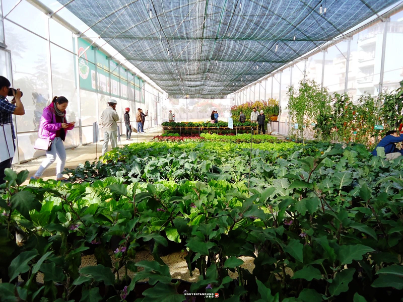 Un modelo de cultivación de verduras y flores en el invernadero con la