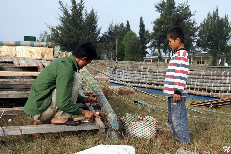 ![]() Habitantes locales en Trang Vi viven cerca de la desembocadura del río Beilun
