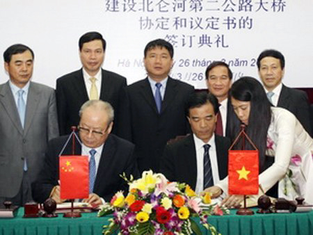 ![]() Dirigentes de los ministerios de Transporte de Vietnam y China firman el acuerdo de construcción del puente Beilun 2