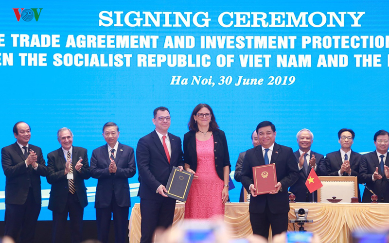 Por su amplia cobertura sobre disímiles sectores, desde la economía, el comercio y las inversiones hasta el desarrollo sostenible, el EVFTA y el EVIPA prometen a Vietnam y la UE oportunidades de explotar al máximo sus potencialidades y la complementariedad de los intercambios. Según estudios, solo por vía del acuerdo de libre comercio el Producto Interno Bruto del país indochino aumentará 4,6%, mientras sus exportaciones a los mercados europeos crecerán un 42,7% hacia 2025. Además, este es el primer tratado de libre comercio que firma el bloque europeo con una nación en vías de desarrollo y el cuarto con un territorio asiático. Esto muestra su apreciación a la posición de Vietnam en la región y al reforzamiento de la asociación y la cooperación bilaterales. El ministro de Industria y Comercio vietnamita, Tran Tuan Anh, evaluó: “Los dos acuerdos recién suscritos reafirman el prestigio de Vietnam y sus aportes proactivos y responsables en pro del desarrollo global hacia la liberalización del comercio. Han asentado fundamentos importantes para reverdecer las relaciones entre nuestro país y la UE en concordancia con su buena asociación estratégica.”