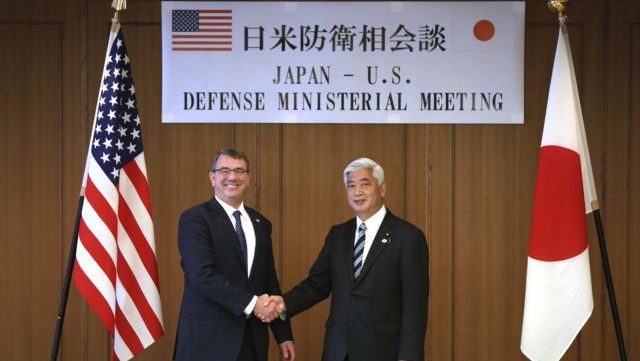 El secretario de Defensa de EEUU, Ash Carter, con su homólogo japonés,