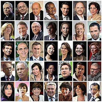 Antes de darse a conocer la composición del nuevo Gabinete francés, Jean-Marc Ayrault y Hollande discutieron durante 4 horas sobre las posiciones ejecutivas dentro del aparato gubernamental. Al prestar juramento en el Palacio Elíseo, el mandatario Hollande mostró respeto hacia la paridad entre hombres y mujeres, ya que de los 34 ministros, 17 son mujeres. Algunos portofolios pasaron a manos de asesores cercanos al primer presidente socialista en 17 años. El jefe de la campaña presidencial, Pierre Moscovici se hará cargo del ministerio de Finanzas, y el expremier Laurent Fabius, de relaciones exteriores. Este será un Gobierno de reforma profunda en respuesta a la aspiración de los galos, afirmó su estrenado jefe Ayrault en declaraciones en la televisión France 2.