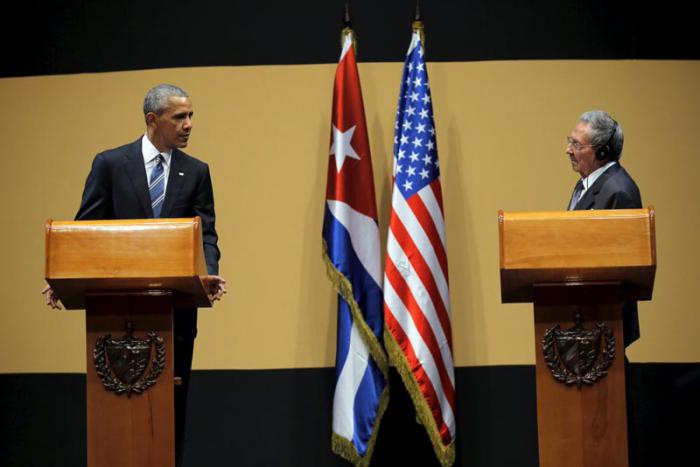 ![]() Los presidentes de Estados Unidos, Barack Obama y de Cuba, Raúl Castro en una rueda de prensa en el Palacio de la Revolución, en La Habana