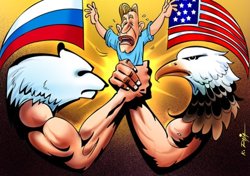 Primero, la crisis en el país no es solamente el enfrentamiento entre los ucranianos, sino una guerra ideológica entre una facción partidaria a Rusia y otra pro Occidente. La inestabilidad se derivó del rechazo de Kiev a la integración nacional en la Unión Europea, considerado como un enfrentamiento Oriente – Occidente en esta nación. Hasta la fecha, Ucrania sigue siendo una batalla entre Estados Unidos y Rusia y su futuro depende del comportamiento de ambas potencias. Mientras Moscú urgió a Washington a presionar a Kiev para poner fin a las acciones militares y promover las negociaciones con las fuerzas de las localidades orientales, la parte norteamericana pidió que el Kremlin no apoye el separatismo ucraniano. Además, Rusia criticó la llamada opresión de Kiev contra los habitantes del Este pero Estados Unidos lo consideró como una medida legal del Gobierno para mantener el orden social conforme a la ley de Ucrania.