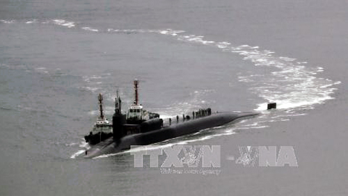 ![]() El submarino nuclear estadounidense USS Michigan llega al puerto surcoreano de Busan este 25 de abril (Foto: YONHAP/VNA)