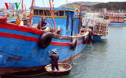 ![]() Pescadores de la comuna de Ky Loi, provincia de Ha Tinh reparan barcos para reanudar la pesca en alta mar (Foto de ilustración)