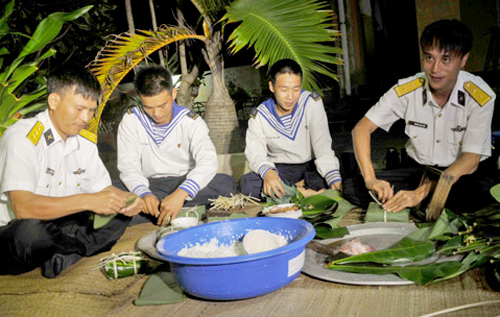 En una tarde de fin de año en el islote Da Thi al Norte del distrito Truong Sa, en la cocina pequeña, el sargento de primera Pham Duy Quang cuece las tortas “banh chung” y prepara apio para guisar con la carne de res de la que él se encarga. Dio a conocer que ésta es la primera vez que recibe la fiesta tradicional lejos de su familia y aunque no disfruta del Tet en tierra firme, el compañerismo y la ayuda mutua en el trabajo le hacen más evocadora la festividad.