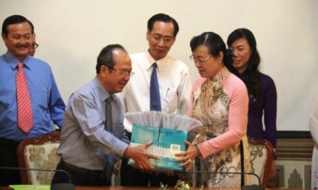![]() Dirigentes de Ciudad Ho Chi Minh entregan al representante del Comité Electoral Nacional la lista oficial de aspirantes nominados e independientes a los cargos parlamentarios y del Consejo Popular municipal