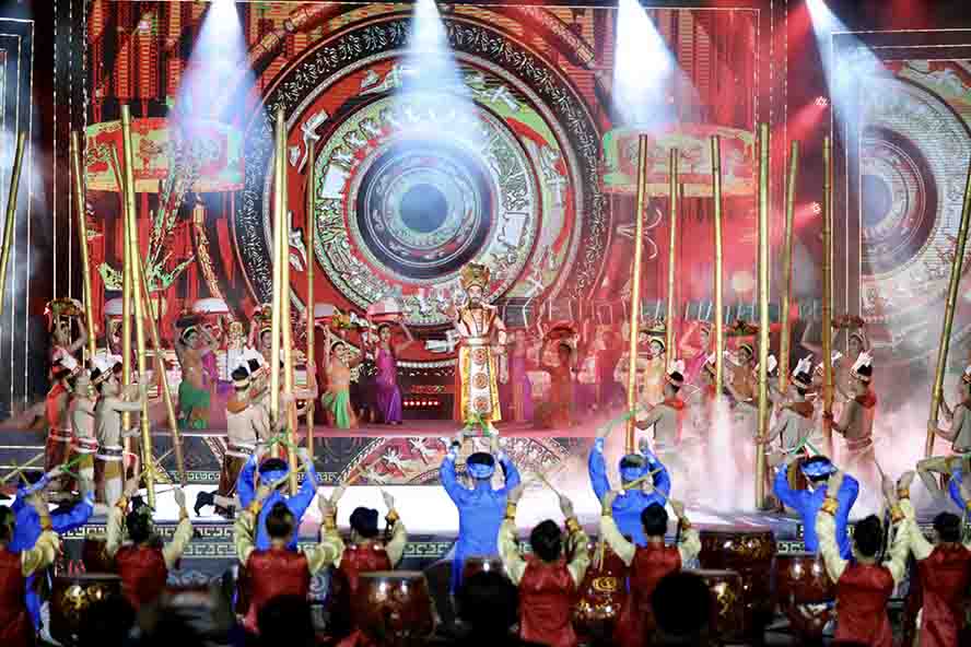 Espectáculo en honor de los méritos de los Reyes Hung en la causa de construcción nacional. (Foto: VGP) |