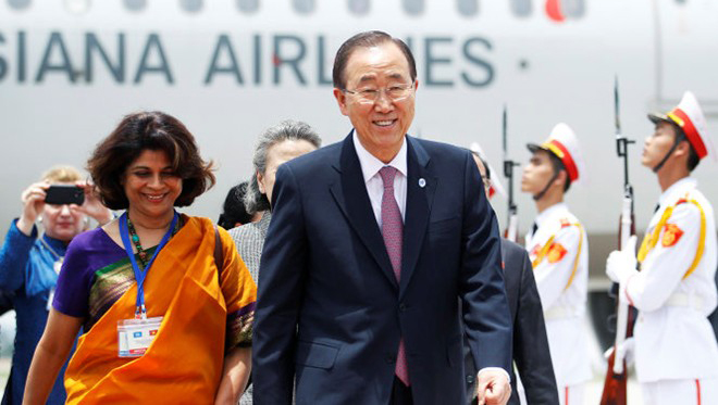 En los recientes resultados el secretario general de la ONU, Ban Ki-moon ha hecho esfuerzos y aportes. Ha contribuido a impulsar el papel de la organización en tres ejes: paz- seguridad, desarrollo y garantía de los derechos humanos. Ha acometido muchas iniciativas y acciones para resolver conflictos regionales, reformar las fuerzas de mantenimiento de la paz, impulsar el desarme y movilizar los esfuerzos internacionales en la prevención y lucha contra el terrorismo, la miseria, las epidemias, además de acelerar el cumplimiento de las metas de desarrollo del Milenio y la elaboración de un programa post 2015. En sus relaciones con Vietnam, el máximo responsable de la ONU profesa gran simpatía a este país que visita por segunda vez. Su actual estancia tiene lugar en medio de los preparativos para celebrar los 70 años de la creación de las Naciones Unidas, cuyo rol se espera potencie para promover el multilateralismo, la ley internacional y la solución pacífica de los conflictos, y el enfrentamiento a los retos de seguridad no tradicionales.