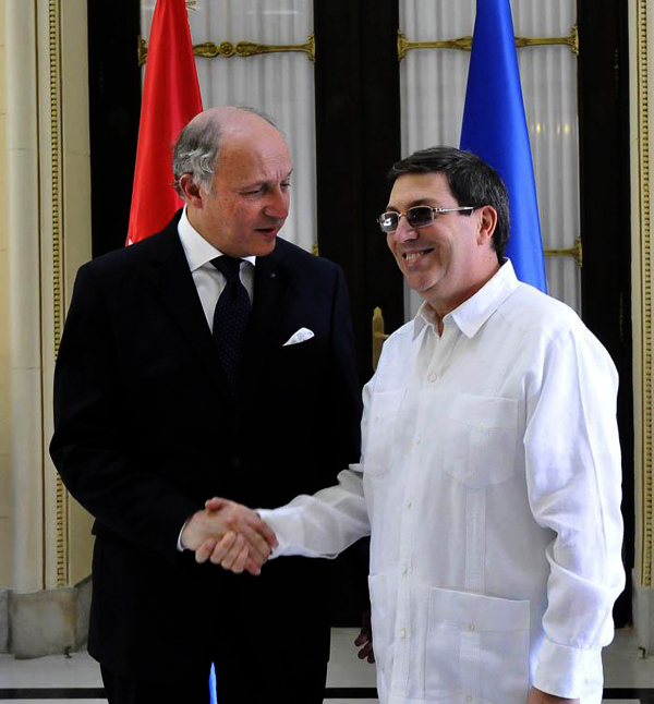 Durante su estancia en Cuba, el jefe de la diplomacia francesa fue recibido por el presidente Raúl Castro y sostuvo conversaciones oficiales con su homólogo, Bruno Rodríguez, Laurent Fabius afirmó que La Habana marcha en una dirección correcta y apreció su papel en las negociaciones de paz entre el Gobierno de Bogotá y las Fuerzas Armadas Revolucionarias de Colombia (FARC), así como sus aportes al éxito de la Cumbre de la Comunidad de Estados Latinoamericanos y Caribeños (CELAC) en enero en la capital cubana.
