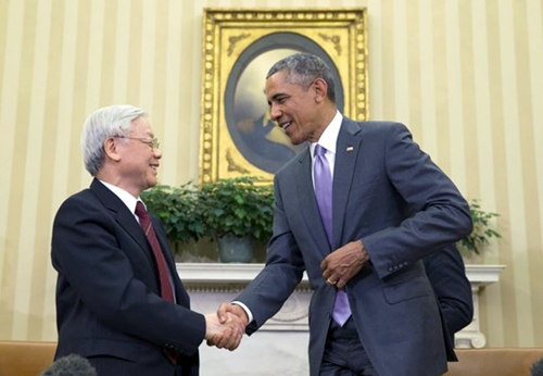 ![]() El máximo líder partidista de Vietnam, Nguyen Phu Trong se reúne con el presidente de Estados Unidos, Barack Obama en la Casa Blanca