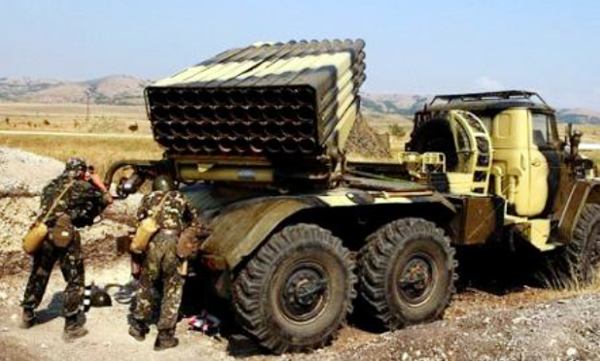 ![]() El sistema múltiple de lanzamiento de cohetes Grad del Ejército del gobierno ucraniano