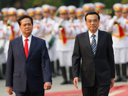 El primer ministro de Vietnam, Nguyen Tan Dung (i) y su homólogo de China,