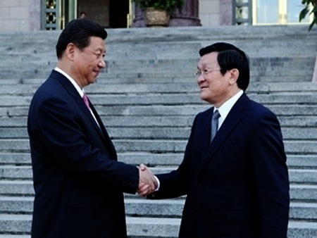 El presidente de China, Xi Jinping (i) y su homólogo de Vietnam, Truong Tan Sang