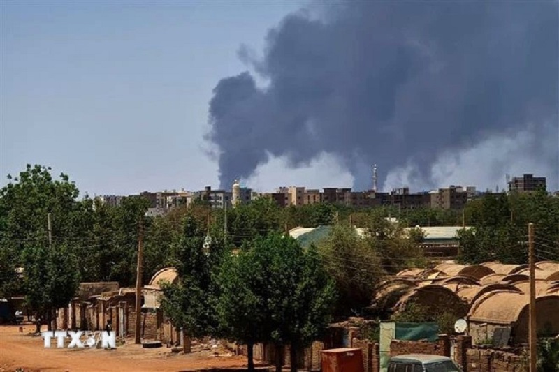 El humo se eleva durante confrontaciones armadas en Jartum, capital de Sudán, el 1 de mayo de 2023. (Foto: VNA) |