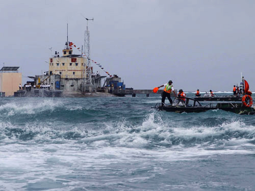 Soldados de la isla de Đá Lớn (Gran Piedra) del archipiélago de