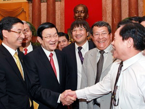 ![]() El presidente de Vietnam, Truong Tan Sang alienta a los empresarios más sobresalientes del país a aprovechar las oportunidades de los tratados de libre comercio pactados