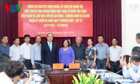 ![]() El presidente del Frente de la Patria, Nguyen Thien Nhan se reúne con dirigentes de los organismos competentes para chequear la aplicación de las políticas prioritarias a las personas meritorias