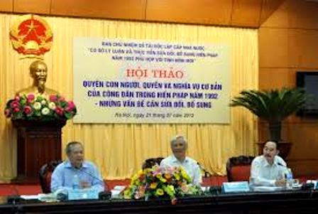 Un nuevo punto importante consiste en que en el proyecto se resaltan algunos principios básicos y premisas relativas a los derechos del pueblo relacionados con el supremo respeto a la Constitución, así como la organización del poder estatal, la fidelidad, garantía y protección de los derechos humanos y ciudadanos. Además, refleja el acercamiento a los valores universales de la humanidad concernientes a la Constitución del Estado de derecho, el carácter hereditario y la regulación razonable de las particularidades políticas y jurídicas de la Carta Magna del período transitorio al socialismo en Vietnam. En el borrador, los derechos del hombre registran fuertes transformaciones con la institución integral y profunda de nuevos lineamientos y políticas del Partido y el Estado vietnamitas en el aspecto de los derechos humanos, así como su garantía y protección.