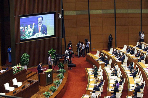 ![]() El primer ministro de Vietnam, Nguyen Tan Dung presenta el informe gubernamental en el X período de sesiones parlamentarias, XIII legislatura