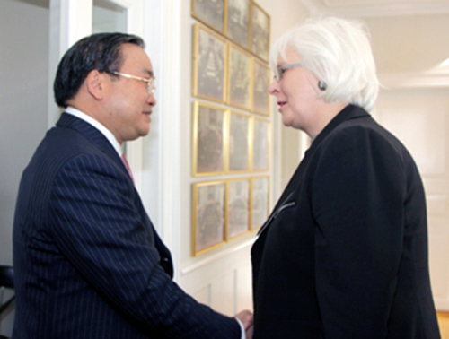 El viceprimer ministro de Vietnam, Hoang Trung Hai se reunió con la entonces primera ministra de Islandia, Jóhanna Sigurðardóttir en septiembre de 2011