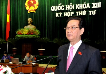 (VOVworld) - En el informe sobre la situación socio-económica en 20l2 y las tareas para 20l3 en la sesión inaugural del IV período de sesiones de la Asamblea Nacional de Vietnam, el primer ministro Nguyen Tan Dung reafirmó que Vietnam se esforzará por lograr mayores resultados en la implementación de las tareas restantes del presente año. Junto con esto, el jefe del gobierno adelantó soluciones para cumplir los objetivos del desarrollo socio-económico en 20l3.