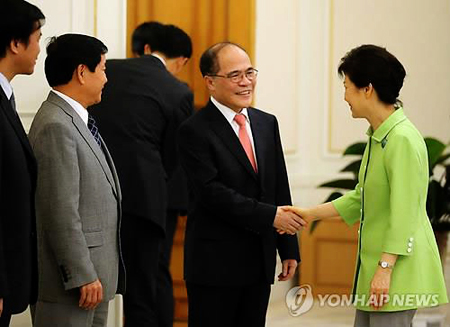 La presidenta de Corea del Sur, Park Geun-hye (d) se reúne con