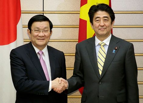 La conversación entre el mandatario vietnamita y el primer ministro japonés, Shinzo Abe, se califica de exitosa. Los dos dirigentes emitieron una Declaración Conjunta sobre el establecimiento de una asociación amplia y profunda entre los dos países, por la paz y la prosperidad en Asia. El presidente Truong Tan Sang apuntó: “La elevación del nivel de las relaciones entre Vietnam y Japón, y el establecimiento de un nuevo marco de cooperación, reflejan la buena marcha de la asociación estratégica entre las dos partes en los últimos tiempos, a la vez que concretan grandes orientaciones para fomentar los lazos bilaterales en la nueva etapa. Dije al primer ministro Shinzo Abe que Vietnam ha impulsado y seguirá impulsando la reforma integral, para construir un Estado de Derechos, ampliar la democracia, promover la reforma administrativa y jurídica e incentivar aún más la reestructuración económica y la renovación del modelo de crecimiento.”