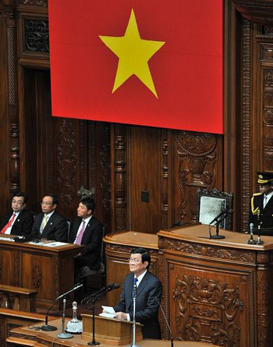 El mandatario vietnamita presenta su discurso en el Parlamento japonés