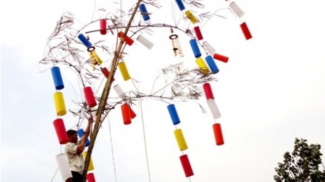 (VOVworld) – Según la creencia de los vietnamitas, el 30 de diciembre lunar se levanta el árbol del Tet y el 7 de enero lunar, se retira para despedir a los antepasados al paraíso. El árbol del Tet se coloca en el patio para espantar a los malignos espíritus y diablos, considerado como símbolo sagrado que proporciona la tranquilidad a la población en los días feriados del Año Nuevo Lunar.