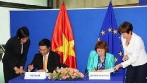 (VOVworld) - Durante su visita a la Unión Europea (UE), el canciller vietnamita Pham Binh Minh y la representante de alto nivel sobre política exterior y seguridad, y vicepresidenta de la Comisión Europea (CE), Catherine Ashton, firmaron oficialmente el Acuerdo marco de asociación y Cooperación integral Vietnam-UE (PCA). Este documento creará un nuevo entorno jurídico y ampliará las relaciones de colaboración entre Vietnam y la Unión Europea en los próximos años.