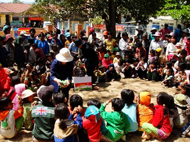 En calidad de jefe de la junta de “Hombres del mismo corazón” durante 20 años, Hung visitó a las familias pobres y coordinó con la administración local en todo el país para organizar cientos de viajes de trabajo misericordioso social. Las personas apoyadas por ellos son dementes, drogadictos, ancianos solitarios, víctimas del agente naranja/dioxina y niños discapacitados. En cada viaje, los integrantes de su filial dieron consultas y distribuyeron gratuitamente medicinas, socorrieron a los compatriotas afectados por las calamidades naturales, inundaciones, obsequiaron sillas de ruedas a los desafortunados, becas a los alumnos necesitados y construyeron las casas de solidaridad. Para Hung la sonrisa de los desamparados es una alegría inapreciable. El compartió: “Mi mayor deseo es ayudar a los hogares de situación difícil. Partiendo de ello, quiero compartir sus penalidades. Esta fuerza motriz nos impulsa a aunar los esfuerzos para paliar sus dolores con un corazón altruista. Consideramos la ayuda a las personas desafortunadas como una alegría y la responsabilidad ciudadana de un vietnamita”.