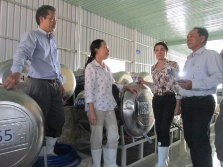 ![]() La presidenta de la Cooperativa Ham Duc, Le Nguyen presenta a los visitantes sobre su cadena de elaboración de vino con la pitaya