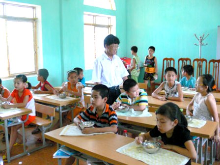Con esa idea, al jubilarse, Tai decidió abrir la escuela primario-secundaria básica de Le Van Tám y se hizo abanderado en la socialización educativa en Tuyen Quang. Después de más de un año de funcionamiento, aunque enfrenta numerosos contratiempos, este modelo ha reafirmado su eficiencia. En el primer año escolar el ciento por ciento de los alumnos primarios cumplieron con sus tareas y más del 90 por ciento de ellos fueron calificados de sobresalientes y excelentes. En este curso el número de alumnos creció un l0 por ciento en comparación con el anterior. Tai asiste con frecuencia a clases para sacar experiencias junto con los maestros y buscar métodos eficaces para ayudar a los escolares a desarrollarse integralmente en inteligencia, sustancia y mente. Además de estudiar en la escuela, los alumnos participan mensualmente en programas de intercambio e indagan sobre la historia local según cada tema, conforme con la asignatura. Lam Thi Tuyet Mai, maestra de bellas artes expuso: “Coordino con la escuela para llevar a los alumnos a visitar la Dirección policial y el baniano de Tan Trao a fin de que indaguen sobre la historia. También recorrimos la división 3l6, y cuando tienen que pintar a los soldados, se basan en la realidad. Aprendí el método de enseñanza de Tai así como su interacción con los alumnos, que considero aspecto central. Ellos pueden participar también en las lecciones impartidas por los maestros”.