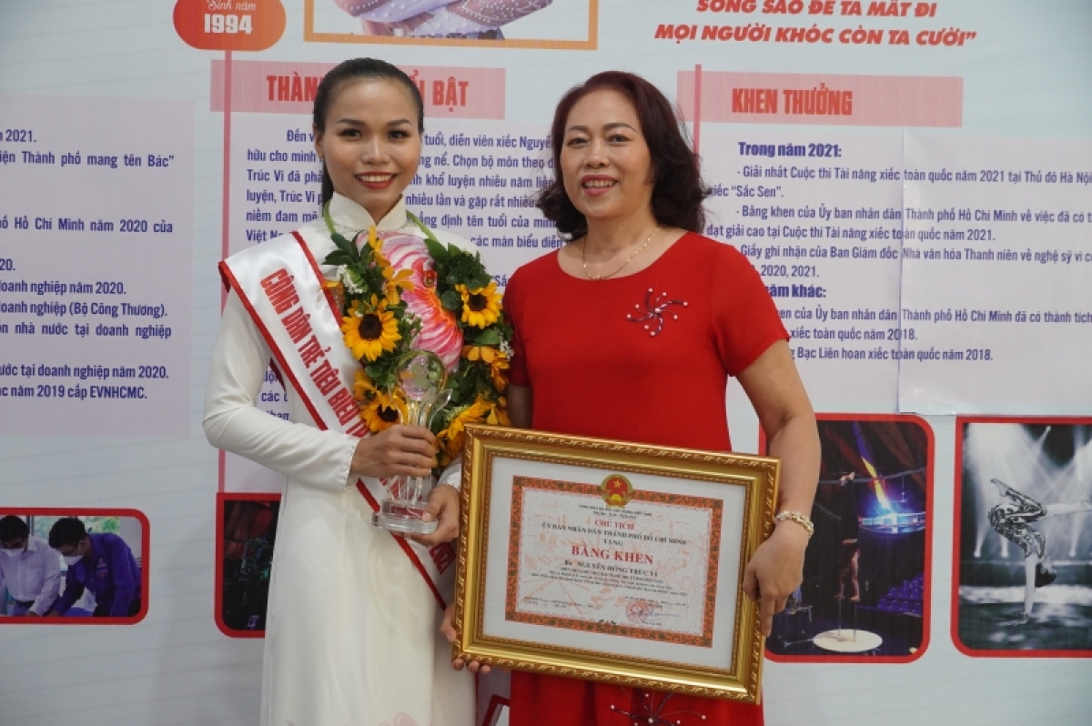 Nguyen Hong Truc Vi es la única representante del sector cultural y artístico en ser homenajeada entre los catorce jóvenes ciudadanos ejemplares de Ciudad Ho Chi Minh en 2021. (Foto proporcionada por Truc Vi) |