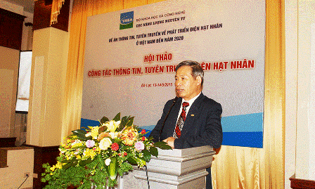 ![]() El profesor asociado y doctor Nguyen Nhi Dien presenta un informe en la Conferencia para la propaganda sobre la energía nuclear