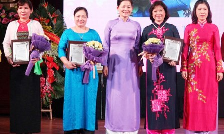 ![]() La artesana Nguyen Thi Tam (segunda persona desde la izquierda) en la ceremonia de entrega del título "Los 10 ciudadanos ejemplares de la capital Hanoi 2015"