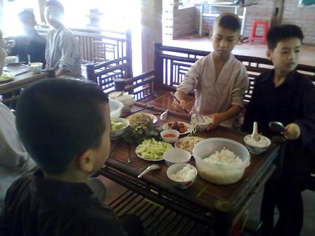 Al ver a los pequeños jugando alegremente en la puerta de la pagoda, nadie piensa que detrás de esas sonrisas se ocultan vidas desafortunadas. Cada uno de ellos tiene una situación diferente. Algunos son huérfanos de padres y otros son de hogares humildes, infelices o sus padres están presos. Al llegar aquí sienten como si estuvieran en su propia casa con el amor del bonzo Tiep y sus amigos. El niño Tran Hai Long que permanece aquí desde hace 2 años compartió que aunque viven, sus padres son pobres y él no tiene condiciones para estudiar. Al ser acogido por el bonzo Tiep y percibir el paisaje tranquilo de este lugar de adoración pidió que le permitiera quedarse aquí. El atiende con esmero la alimentación, el sueño y el estudio de los pequeños. Long expresó: “El bonzo Tiep siempre se preocupa por nuestra vida. Percibo su amor hacia nosotros. Compra cosas necesarias para nuestras actividades diarias y a veces nos lleva a pasear. Sus palabras nos alegran y tranquilizan más ”.