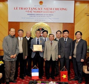 El profesor Le Van Cuong (c) recibió la medalla "Por la causa de la educación"
