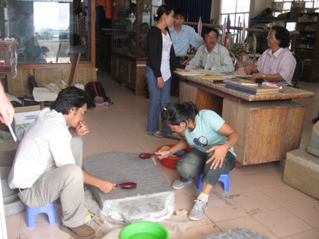 Quang Van Son y una colega estudian un epitafio antiguo