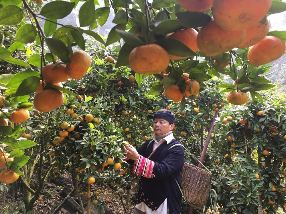 Sin desanimarse ante esta situación, el antiguo militar decidió limpiar los cerros para después plantar un huerto. Con el apoyo de su esposa, Binh solicitó un préstamo al banco local para invertir en fruticultura y silvicultura. El decidido trabajador recuerda: “Gracias al préstamo pude comprar y plantar diferentes variedades de frutas y de té. Este tipo de agricultura ha funcionado bien y me ha dado una buena vida. Decidí compartir mi experiencia con mis vecinos y ofrecerles préstamos sin intereses para que pudieran empezar a desarrollar sus propios huertos”.