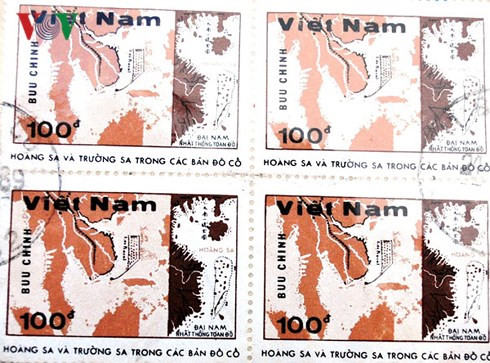La segunda, con un valor nominal de 100 dongs, lleva la inscripción “Archipiélagos de Hoang Sa y Truong Sa en el Mapa Antiguo” y representa el mapa de Vietnam con su región marítima que abarca estos dos archipiélagos. En su esquina derecha, se registra una serie de palabras “Dai Nam Nhat Thong Ban Do", nombre del mapa geográfico del estado del Dai Nam, pintado por Phan Huy Chu y adjuntado a este hay una acotación de que fue publicado bajo la dinastía del emperador Minh Mang en 1838. Actualmente, Tran Huu Hue tiene más de 200 sellos sobre los temas de Hoang Sa y Truong Sa. El coleccionista dijo: “Quiero que el mundo reconozca la soberanía vietnamita sobre Hoang Sa y Truong Sa a través de mis sellos. Por eso, he decidido implementar un proyecto llamado “El mundo reconoce a Hoang Sa y Truong Sa como parte de Vietnam a través del sello postal”.