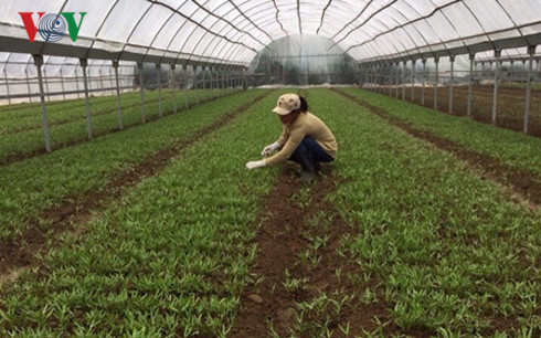 La señora Do Thu Cuc trabaja en un invernadero de la empresa
