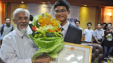 (VOVworld) – En la Olimpiada Internacional de Matemáticas de 20l5 celebrada recientemente en Tailandia, Vu Xuan Trung, alumno del onceno grado del preuniversitario vocacional de Thái Binh, ganó una medalla de oro, con 34 puntos, el mejor del equipo. Regresando de Tailandia, Vu Xuan Trung es el nombre más elogiado por sus amigos y profesores, ya que fue el miembro menor del equipo vietnamita, pero obtuvo la mejor puntación.