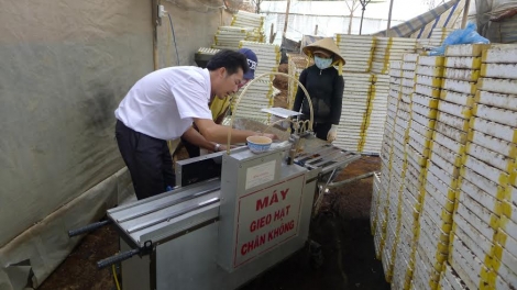 (VOVworld) - Desde el año 2004 hasta la fecha, Nguyen Hong Chuong ofreció 7 invenciones y fabricó 2 máquinas agrícolas al servicio de los campesinos. Su producto más novedoso es la espaldera de hortalizas limpias de alta tecnología. A finales del 20l3, fue uno de los pocos campesinos vietnamitas que tuvieron el honor de recibir el diploma del jefe del Gobierno por sus aportes excelentes al movimiento de la construcción del nuevo campo con numerosas innovaciones de gran utilidad.